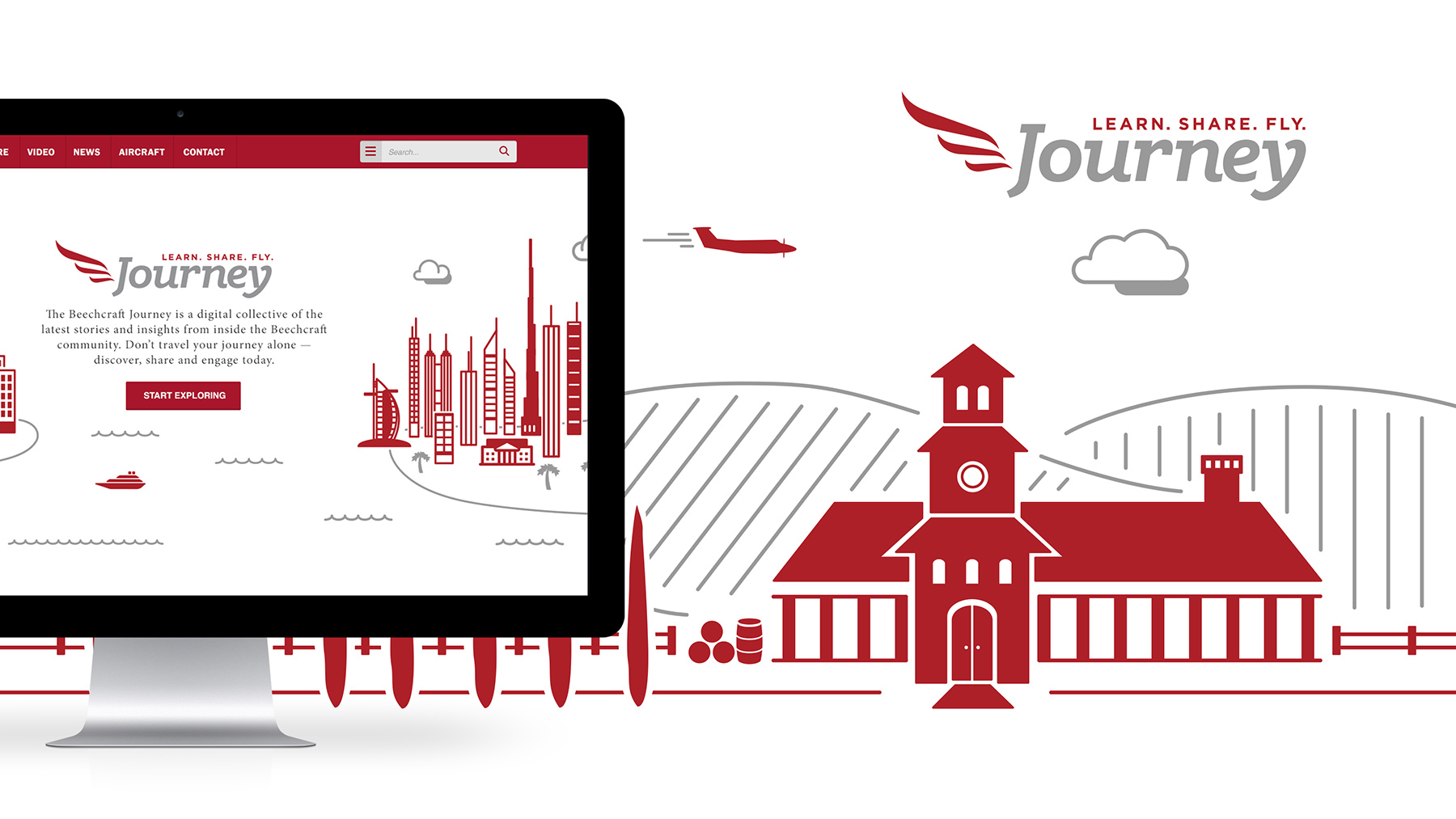 Alongside the site design, we crafted a launch campaign to drive customers to the website. The campaign focused on inviting customers to share their own stories with the simple core message, “everyone has a story.” Visually, we developed a system of illustrations that exhibited various recreational and business uses of the product. These illustrations were a fresh take on the Beechcraft brand, which helped it grow beyond its traditional borders, into something more friendly and approachable.