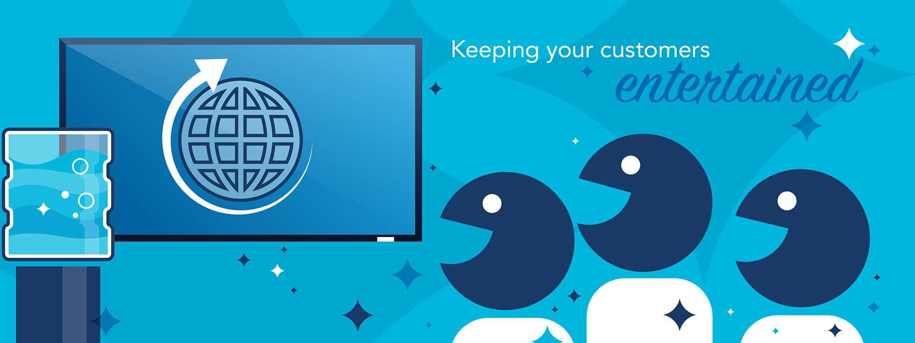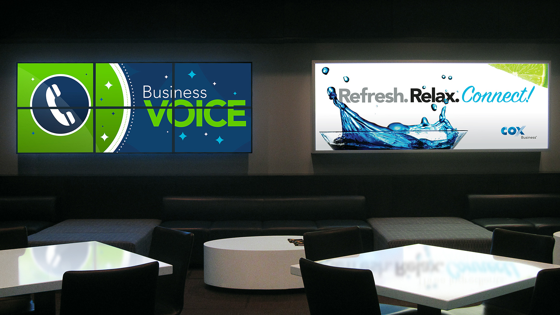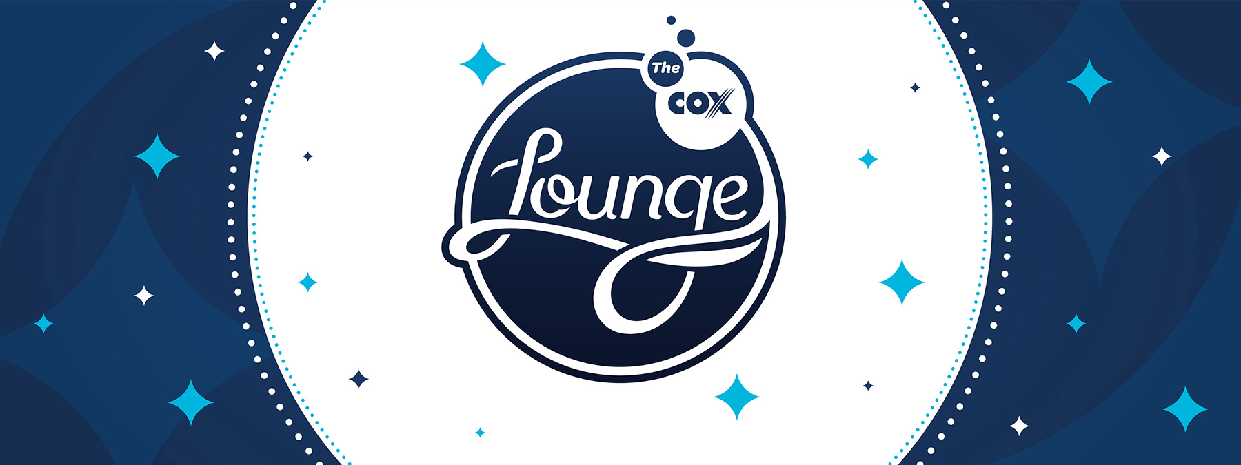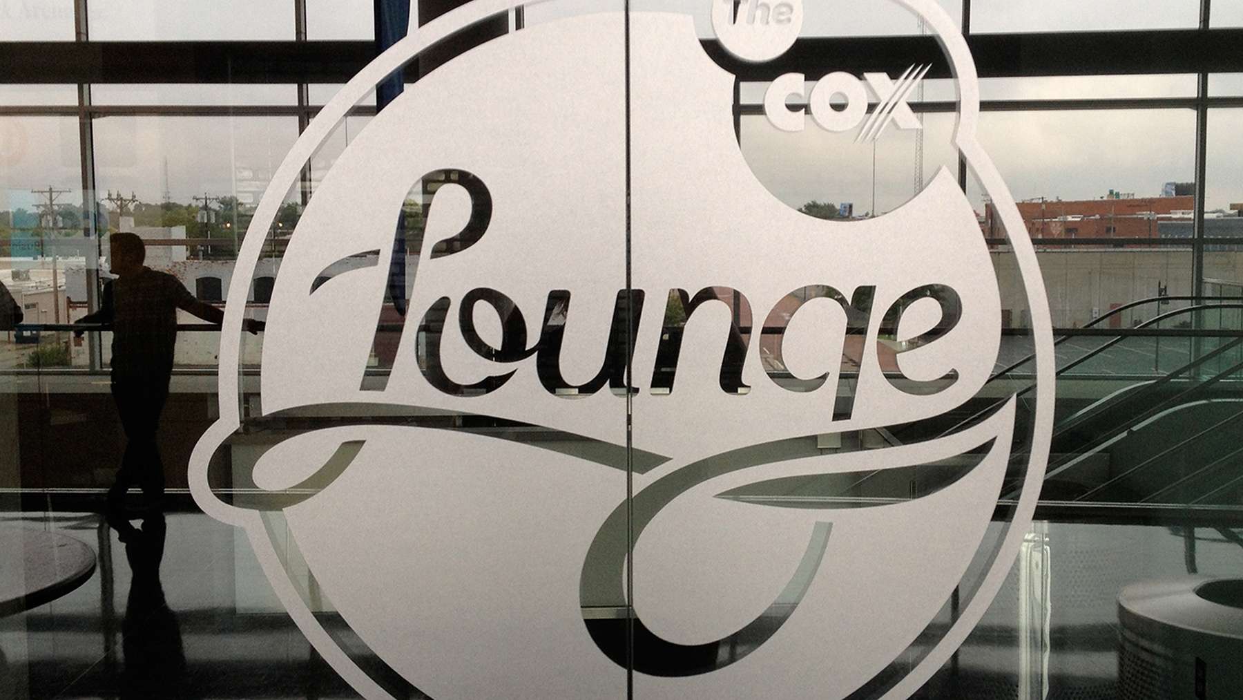Cox Business opened up a new, stylish lounge in a local arena, and needed great branding to complement the space and the company brand. The signage and whimsical visuals refer to mingling and making connections, while the fluid type represents drinks and cocktails available in the lounge.