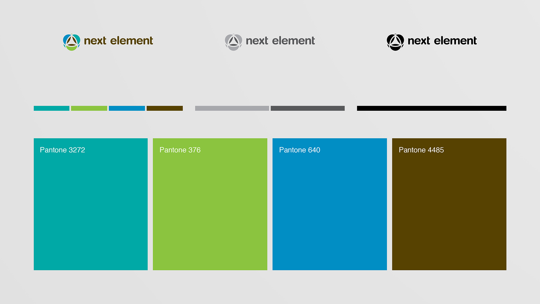 The new logo for Next Element focuses on balance, teamwork and community. The three orbs combined with a fresh color palette represent diverse personalities in harmony, balanced and working together for a common goal.