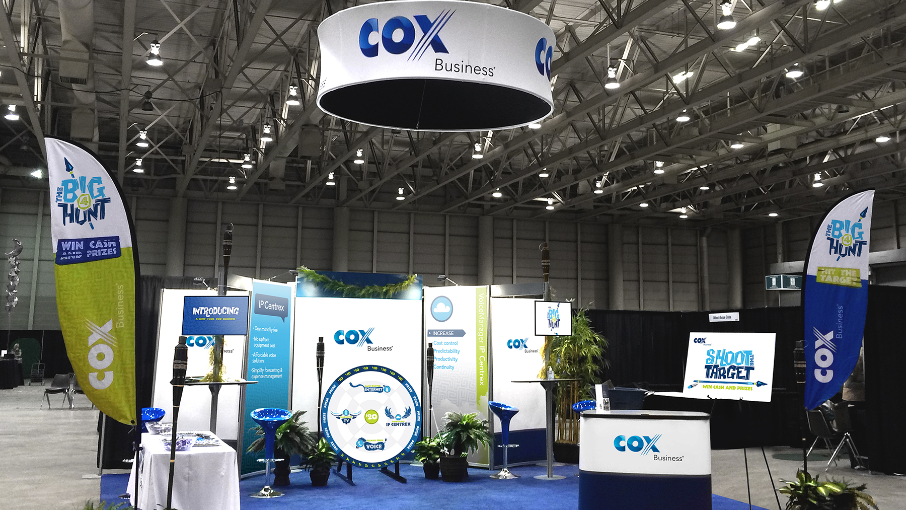 For further attendee engagement, upon entering the event, each person was given branded materials and an arrow that encouraged them to visit the Cox Business booth. There, attendees had the opportunity to win cash and prizes by throwing the arrows at a branded Big 4 Game target.